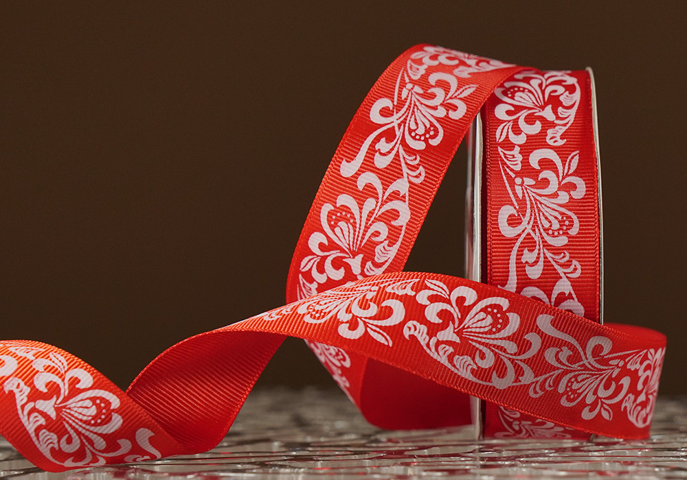 Репсова стрічка з принтом "КВІТИ-3" червоний (2,5 см *23 м) (1 рулон)