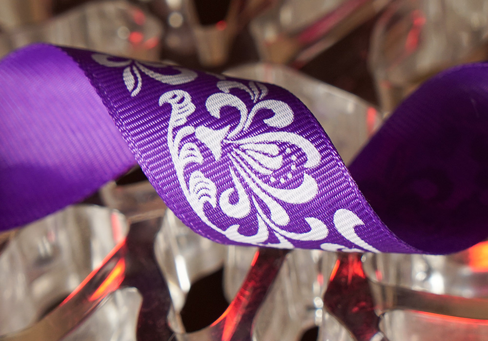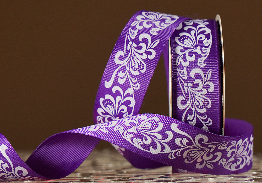 Репсова стрічка з принтом "КВІТИ-3" пурпурно-фіолетовий (2,5 см *23 м) (1 рулон)