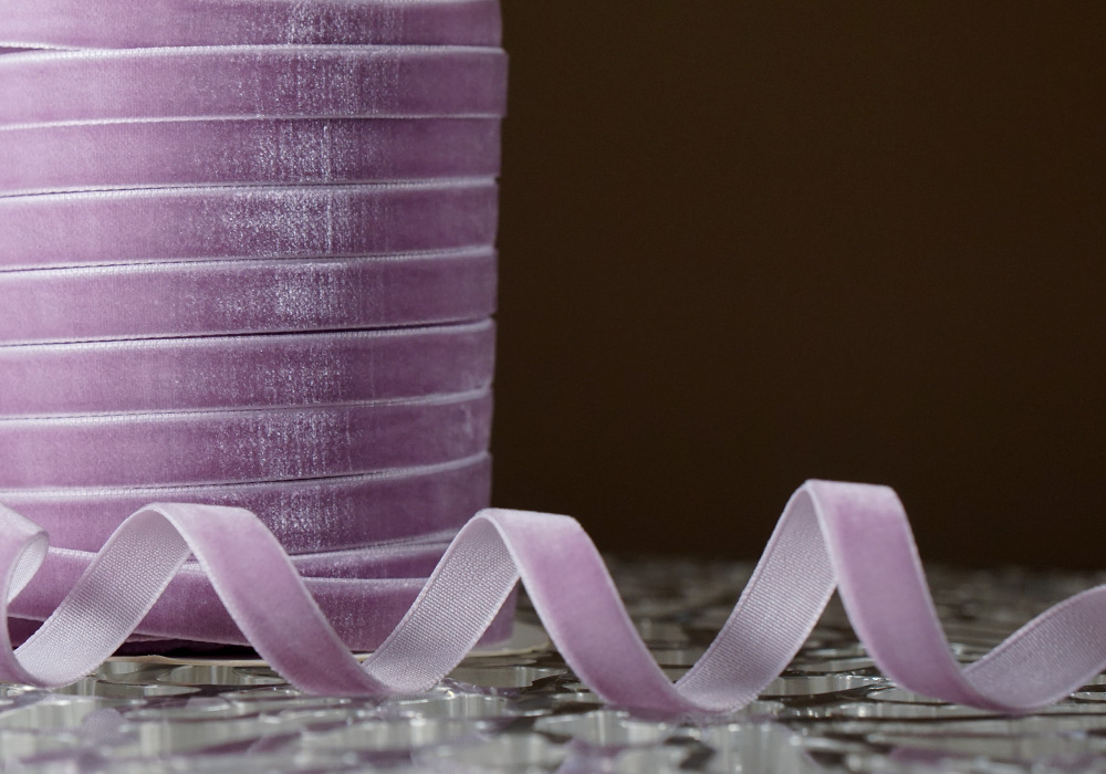 Стрічка оксамитова (велюр) 1,0см блідо-бузкова (№C38) (1,0 см*45м) (1 рулон)
