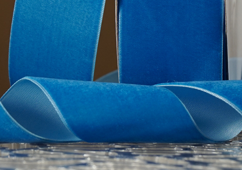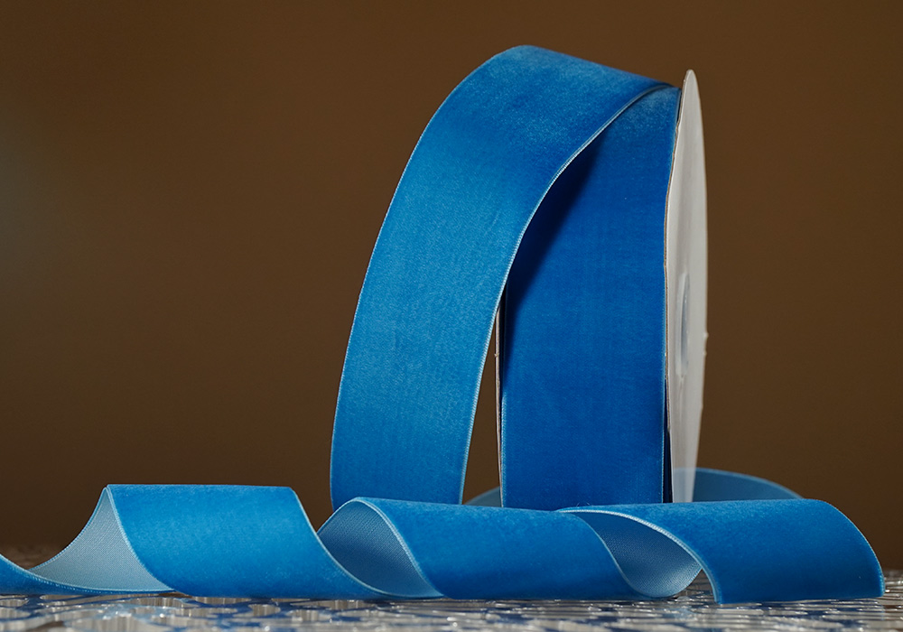 Стрічка оксамитова (велюр) синій (№C32) (5.0см*18м) (1 рулон)