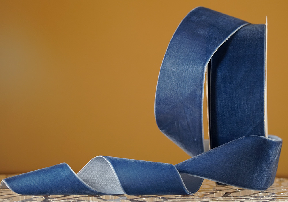 Стрічка оксамитова (велюр) синій (джинс) (№C67) (5.0см*18м) (1 рулон)