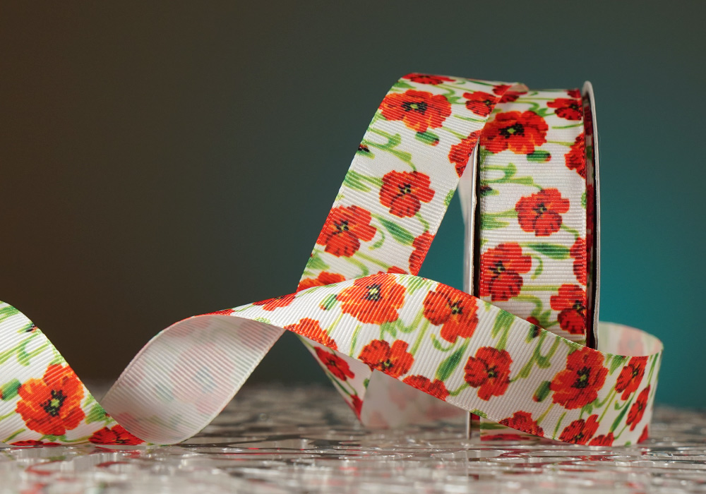 Стрічка репсова Маки-3 (Український принт) (2,5 см *23 м) (1 рулон)