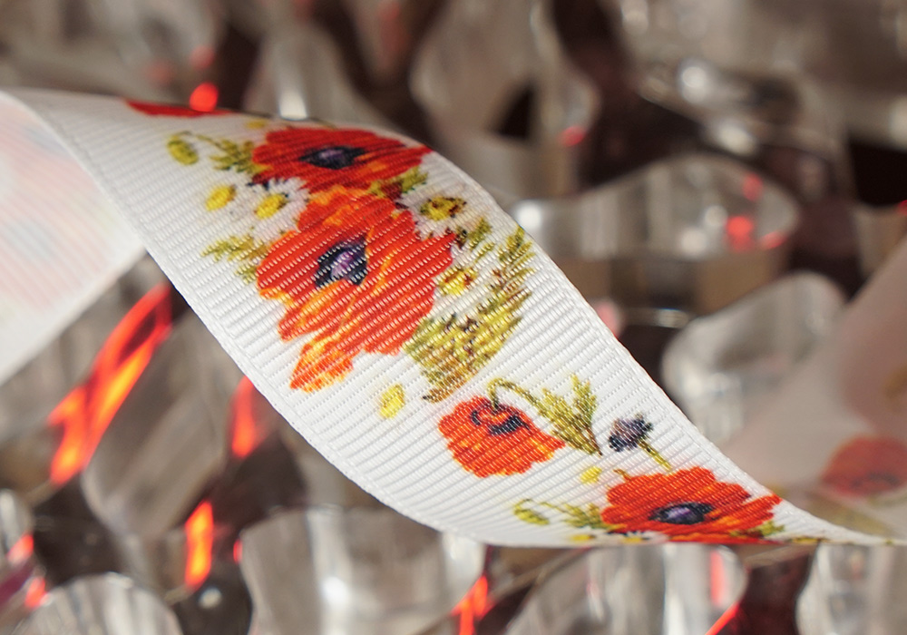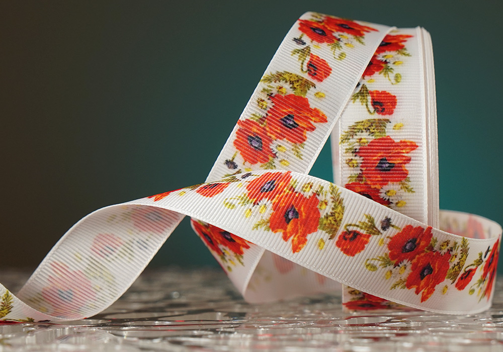 Стрічка репсова Маки (Український принт) (2,5 см *23 м) (1 рулон)
