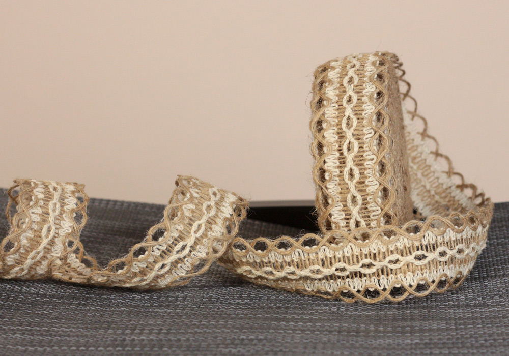 Стрічка з мішковини в'язана №127 (4,0 см *10 м), натуральний (1рулон)