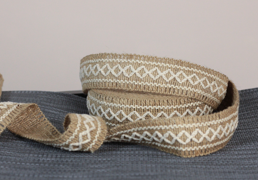Стрічка з мішковини в'язана №129 (3,6 см *10 м), натуральний (1рулон)