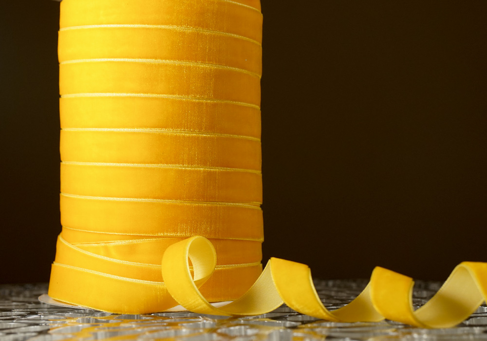 Стрічка оксамитова (велюр) жовта (№C13) (1,5 см*45м) (1 рулон)