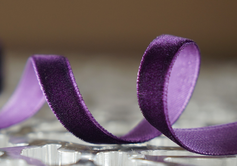 Стрічка оксамитова (велюр) 1,0см фіолетова (№44) (1,0 см*45м) (1 рулон)